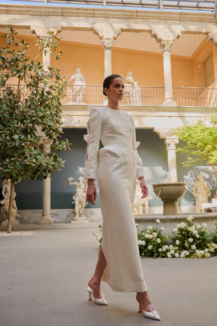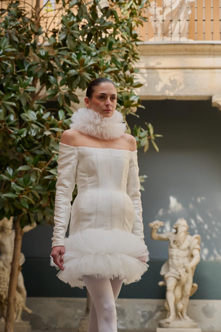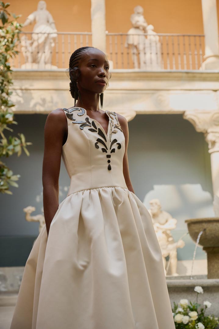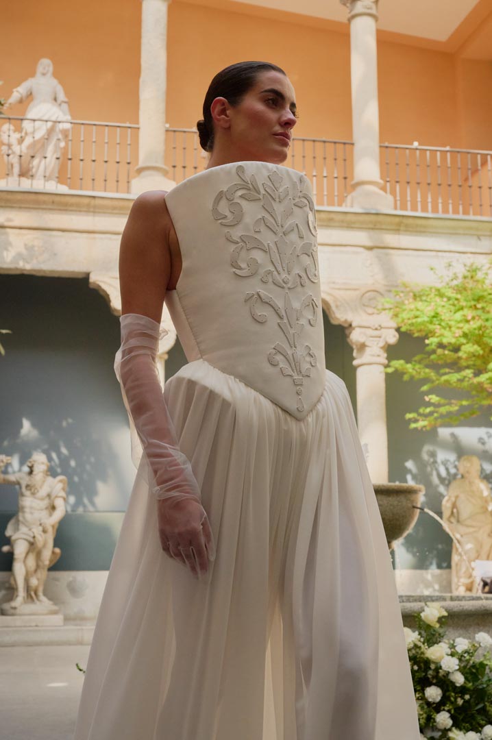 La firma de alta artesanía Candelas y Felipa, presenta EL ALCÁZAR, una colección que reinterpreta la moda de los siglos XVI y XVII desde una mirada contemporánea y arquitectónica. Inspirada en la estética de la corte de los Austrias y en la pintura del Siglo de Oro, la propuesta explora volúmenes estructurados, siluetas escultóricas y una construcción técnica rigurosa, poniendo el foco en la precisión del patronaje y en una concepción arquitectónica de la prenda.