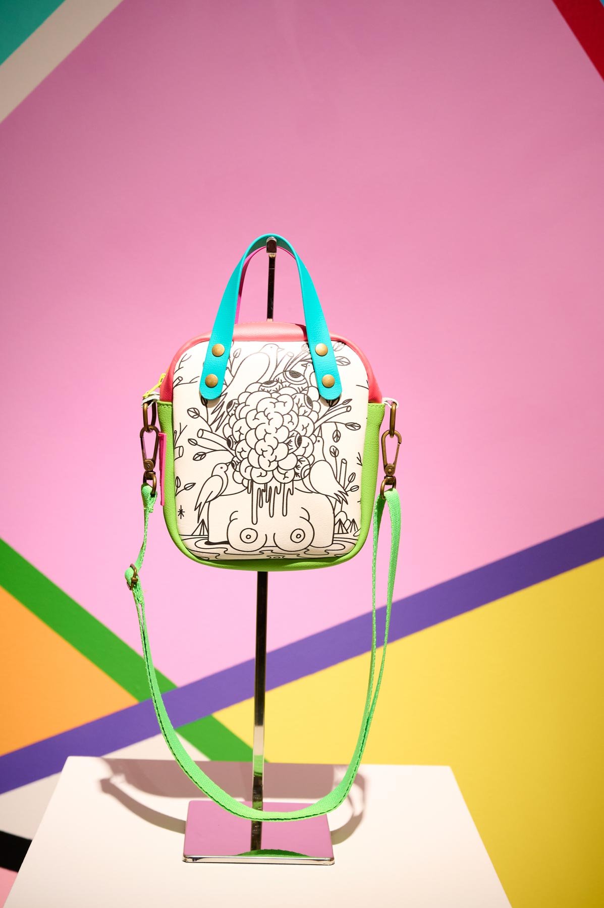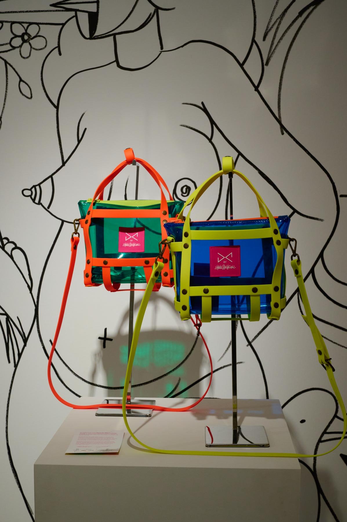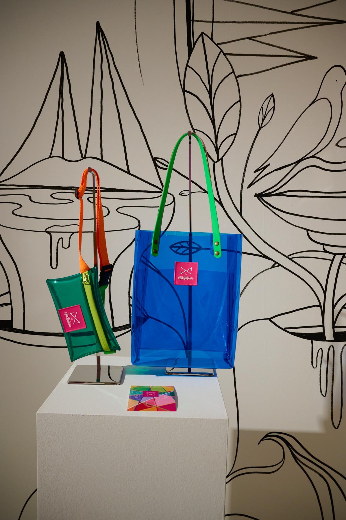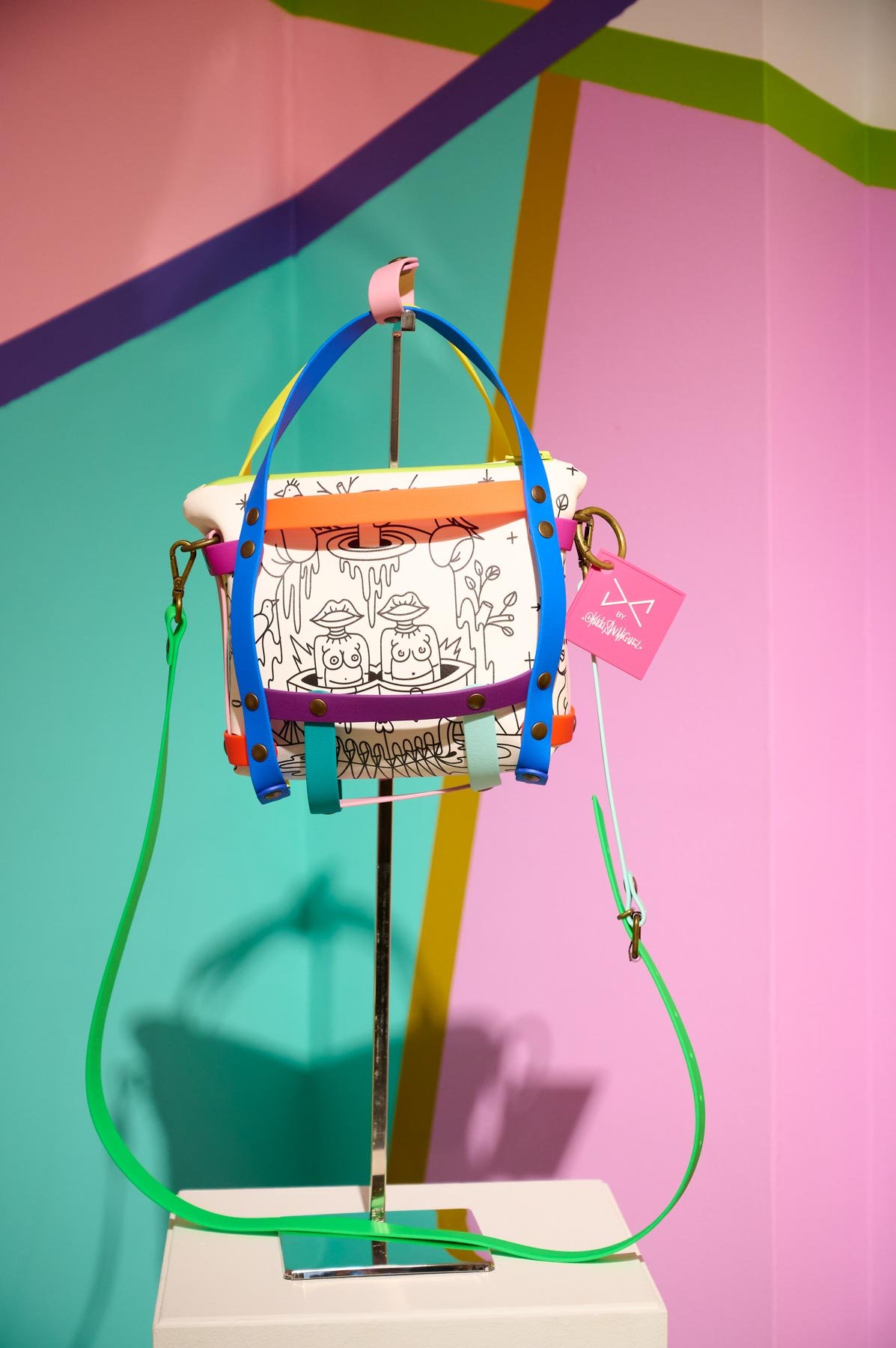 Una alianza que nace de la afinidad estética y conceptual entre ambos creadores: la paleta vibrante y las formas geométricas características de Okuda San Miguel se integran armónicamente en los complementos atemporales y funcionales de Daniel Chong. El resultado son piezas que trascienden su función, convirtiéndose en obras de arte ready-to-wear, donde el estilo urbano y la autenticidad se encuentran sin concesiones.