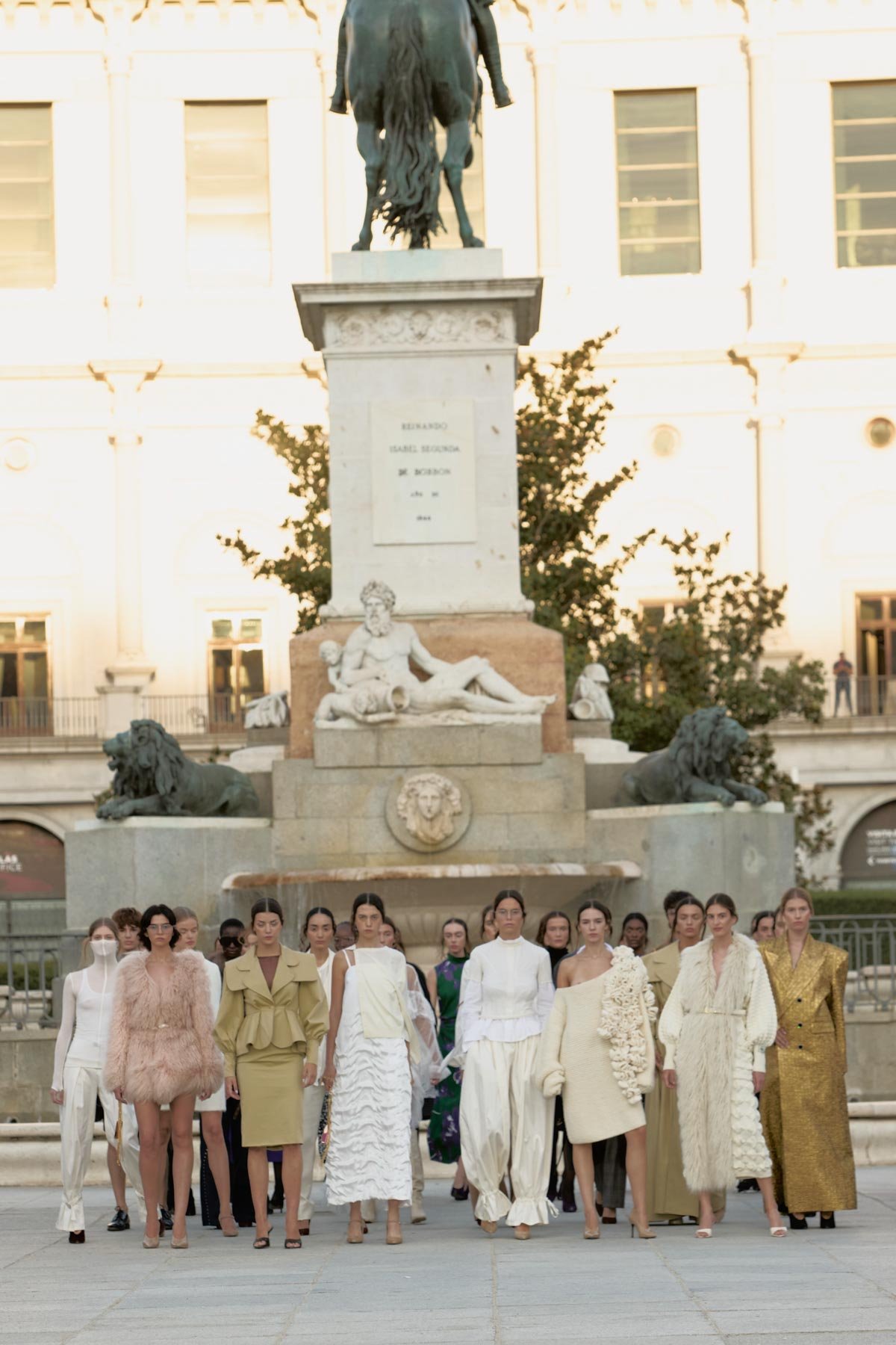 En esta edición, el desfile inaugural está dedicado a todas aquellas personas que hacen posible el sueño artesano de la moda española. Diseñadores, costureras, patronistas y demás oficios, pero también a los amantes del diseño made in Spain y a la ciudad de Madrid, por acoger, mezclar y empujar el talento que llega de todas las regiones.