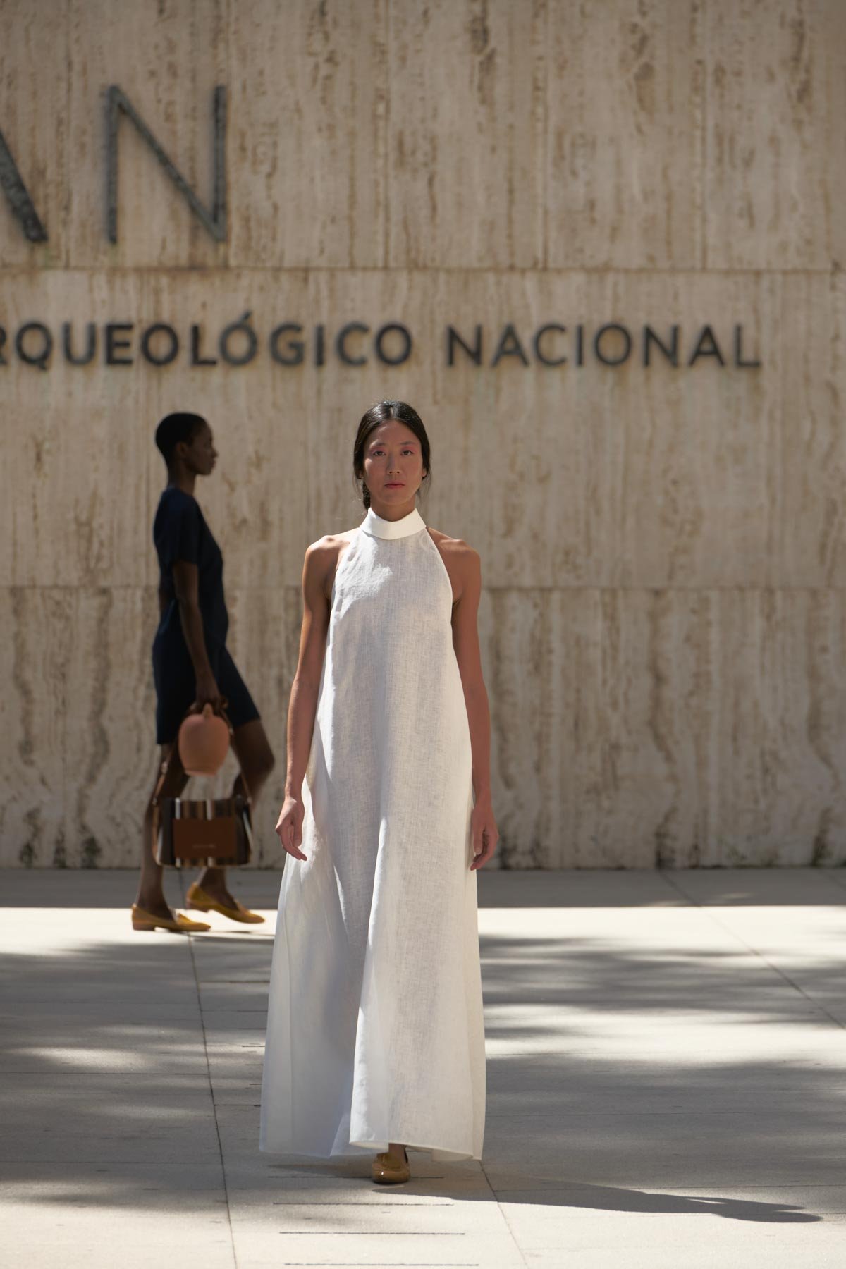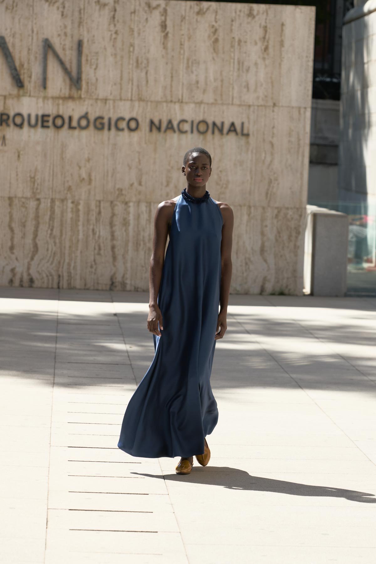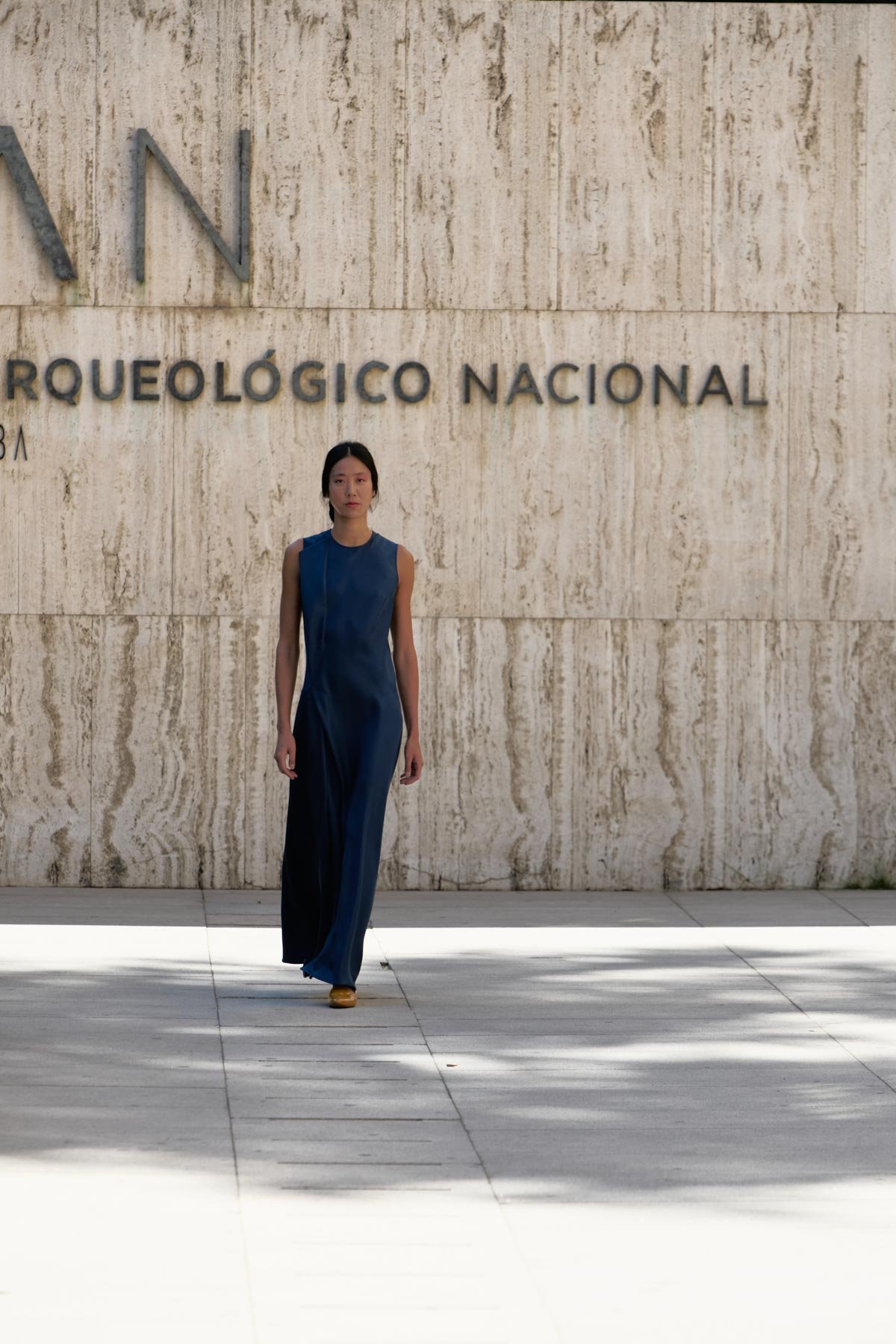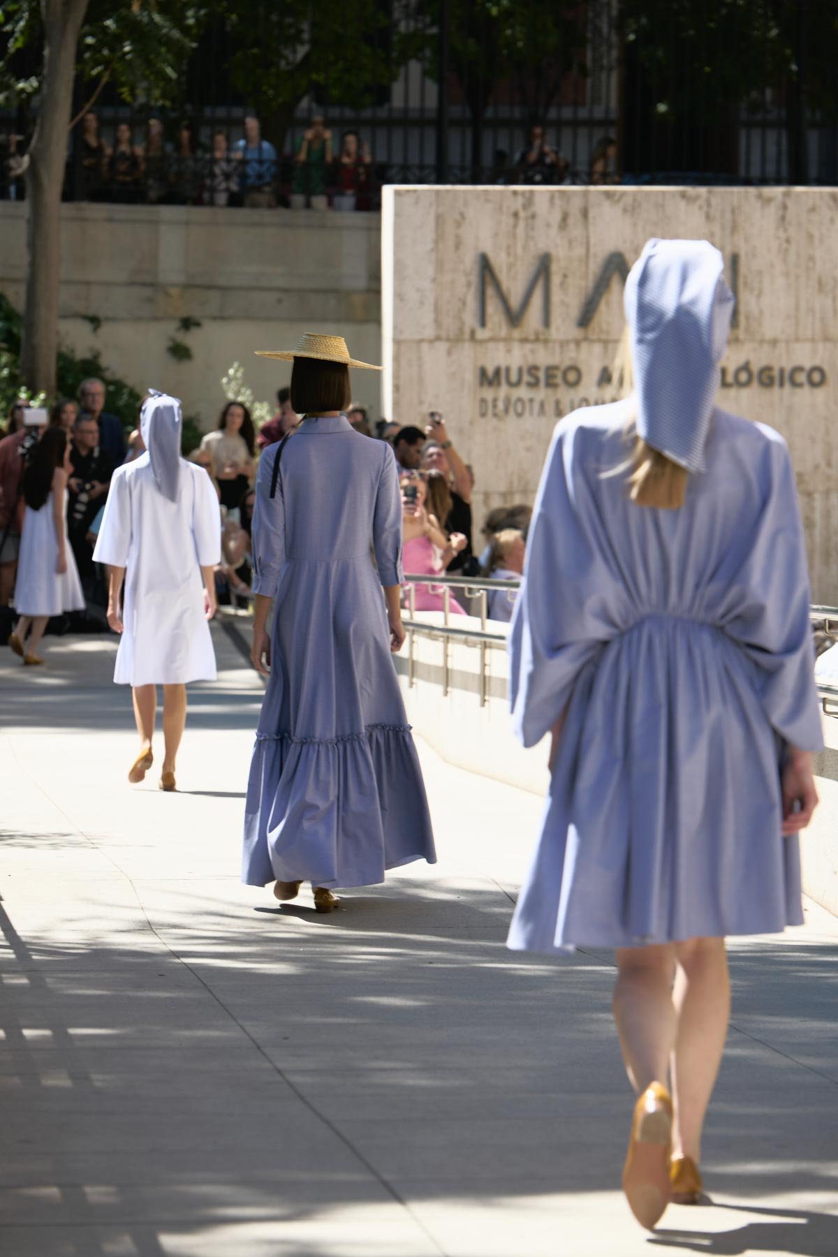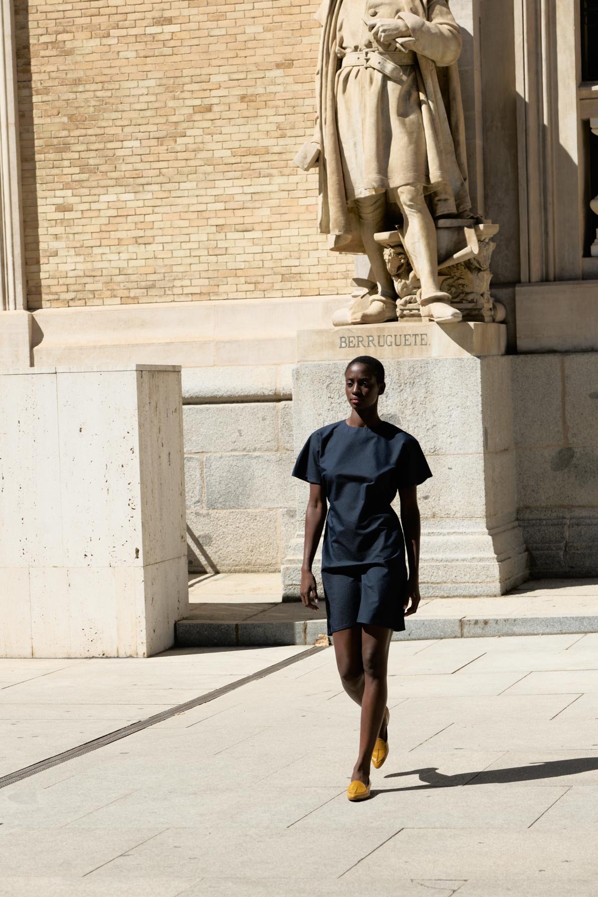 La colección de Devota & Lomba se inspira en los veranos de Sorolla, evocando su luz y atmósfera a través de formas volumétricas construidas con fruncidos. El tejido se ciñe para luego ser liberado, un contraste que no se puede apreciar sin discernir la opresión o el límite y el acto de soltarlo. No existe una acción sin la otra, la dialéctica de los extremos.