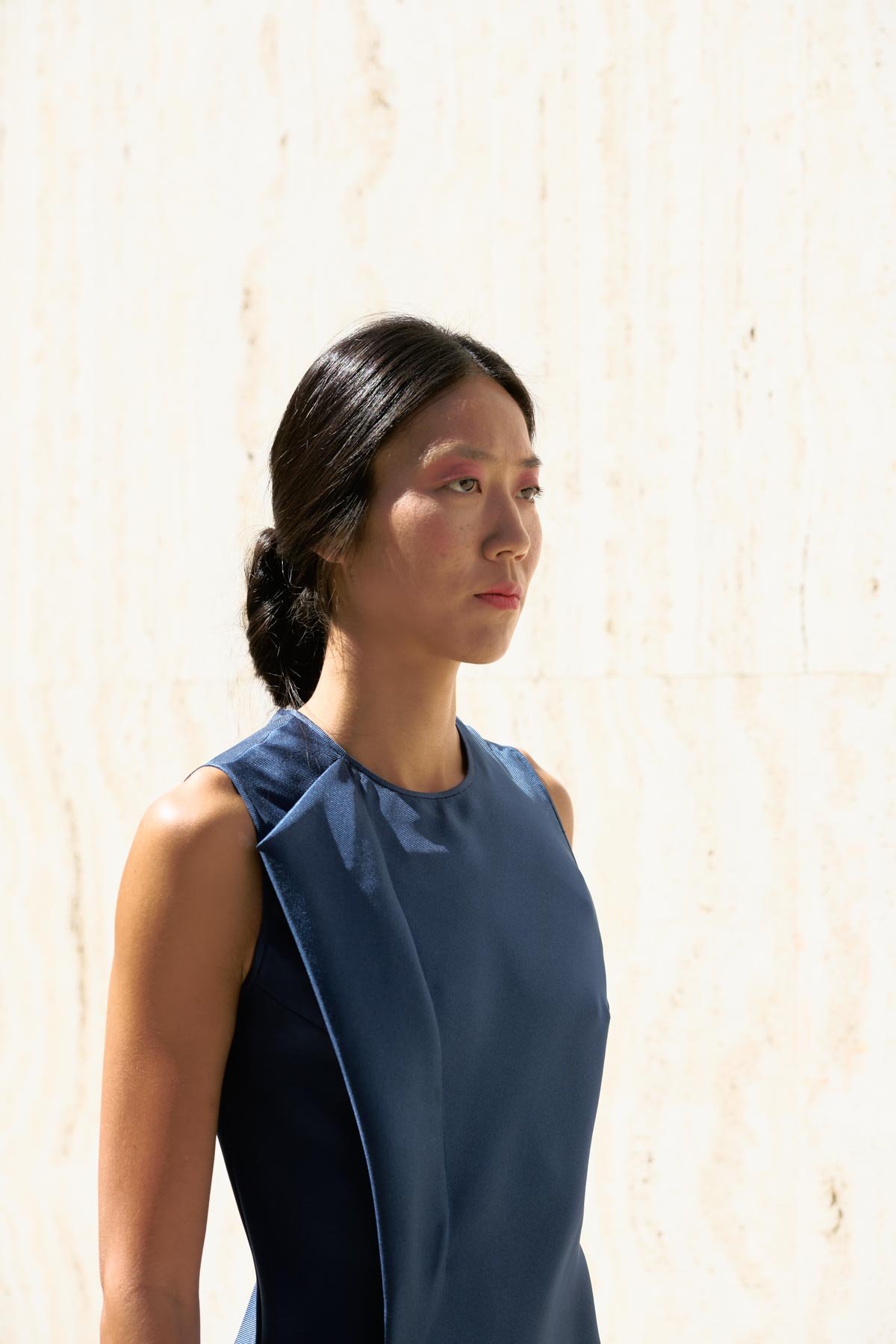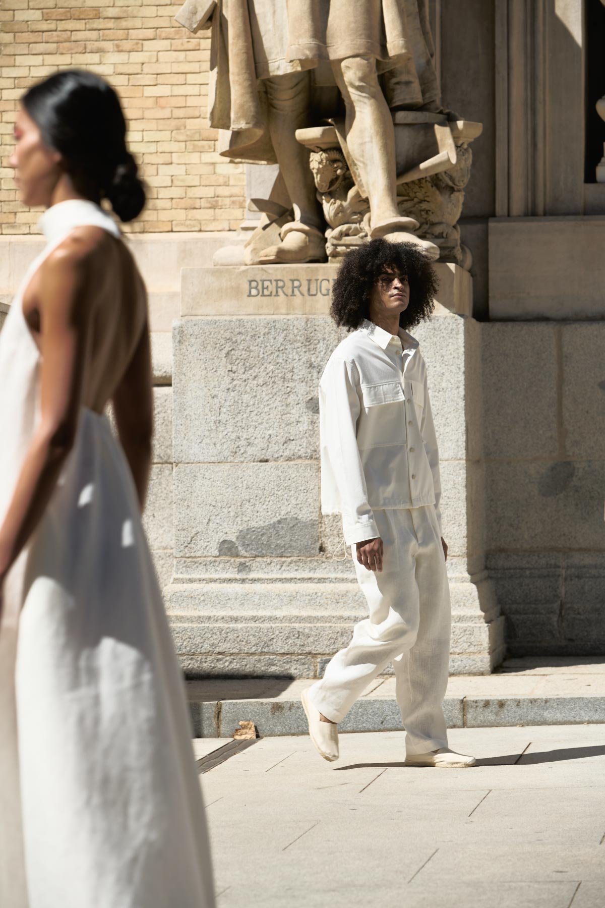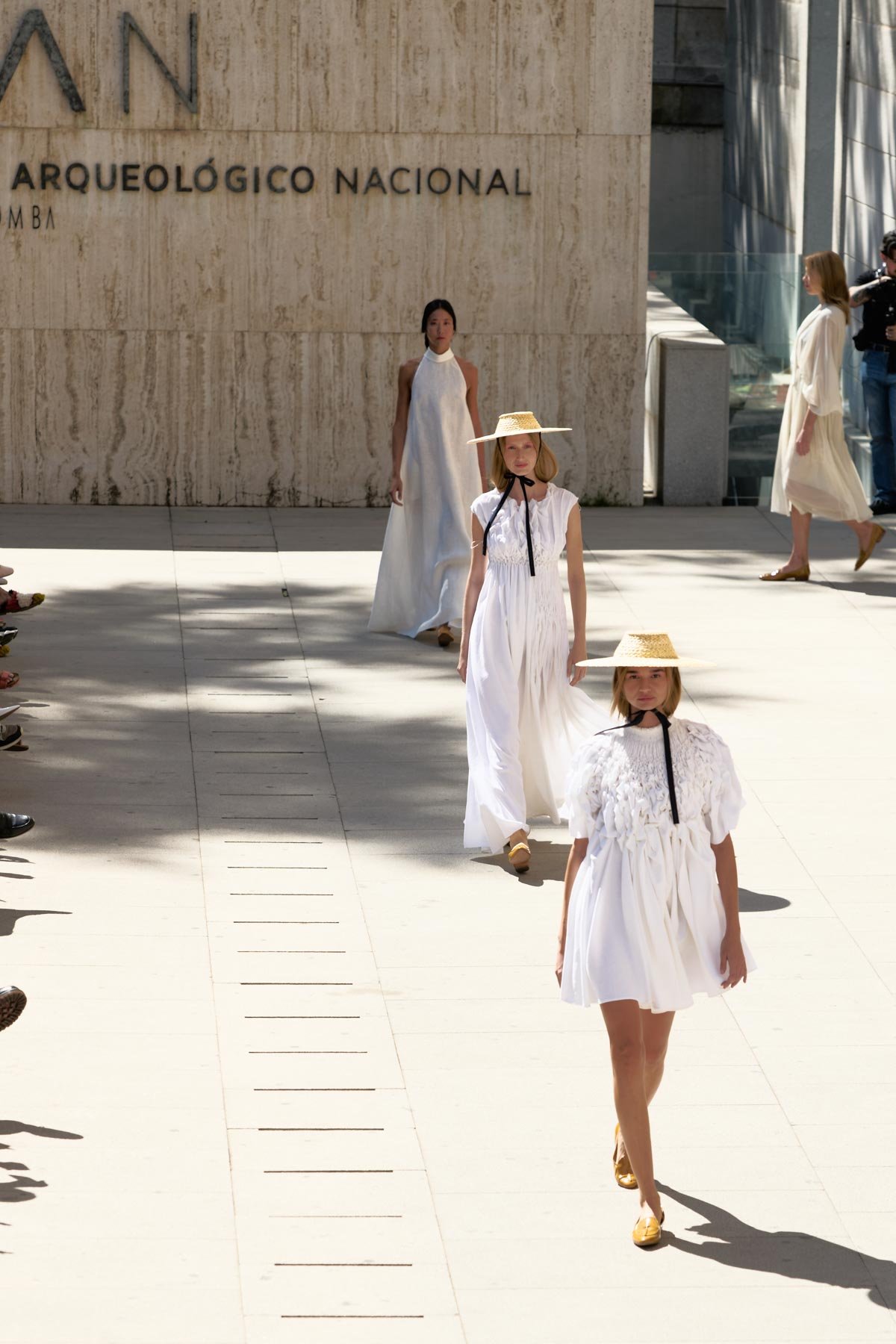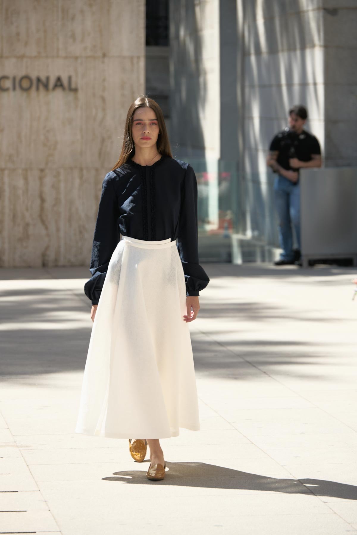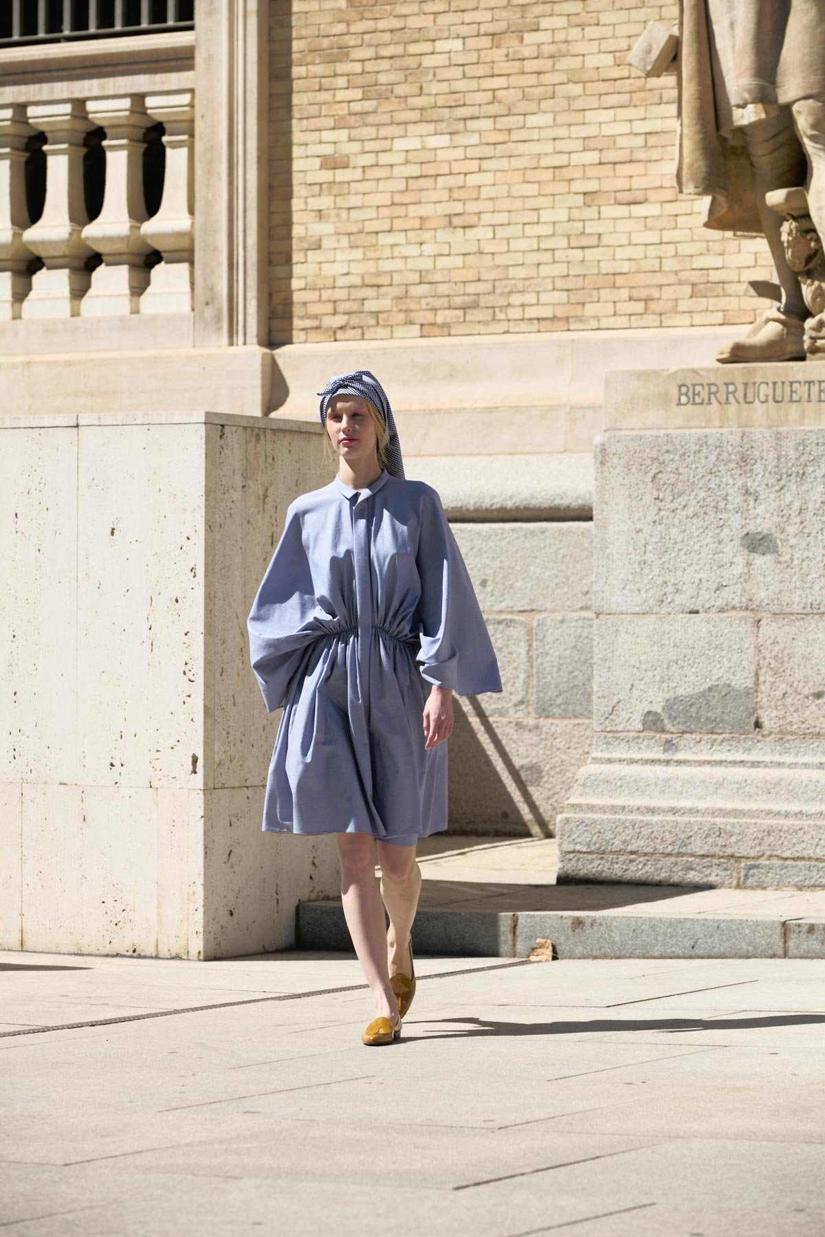 La colección de Devota & Lomba se inspira en los veranos de Sorolla, evocando su luz y atmósfera a través de formas volumétricas construidas con fruncidos. El tejido se ciñe para luego ser liberado, un contraste que no se puede apreciar sin discernir la opresión o el límite y el acto de soltarlo. No existe una acción sin la otra, la dialéctica de los extremos.