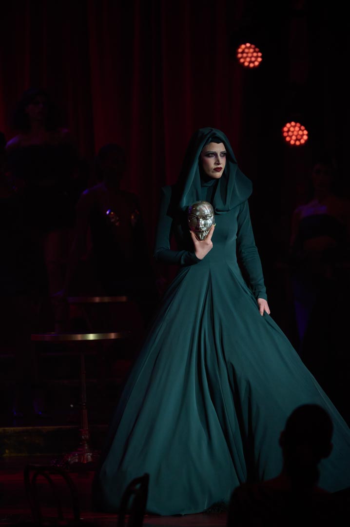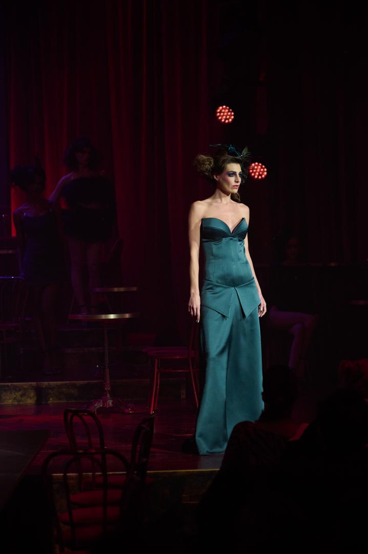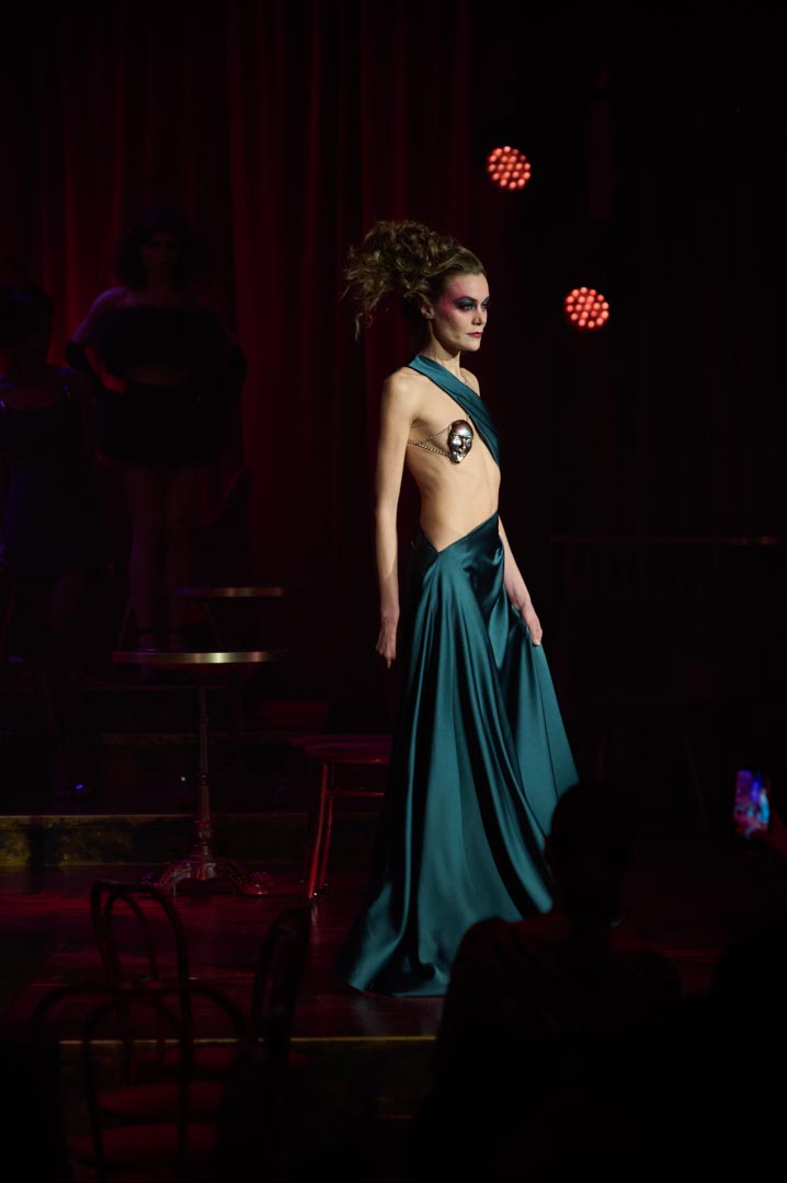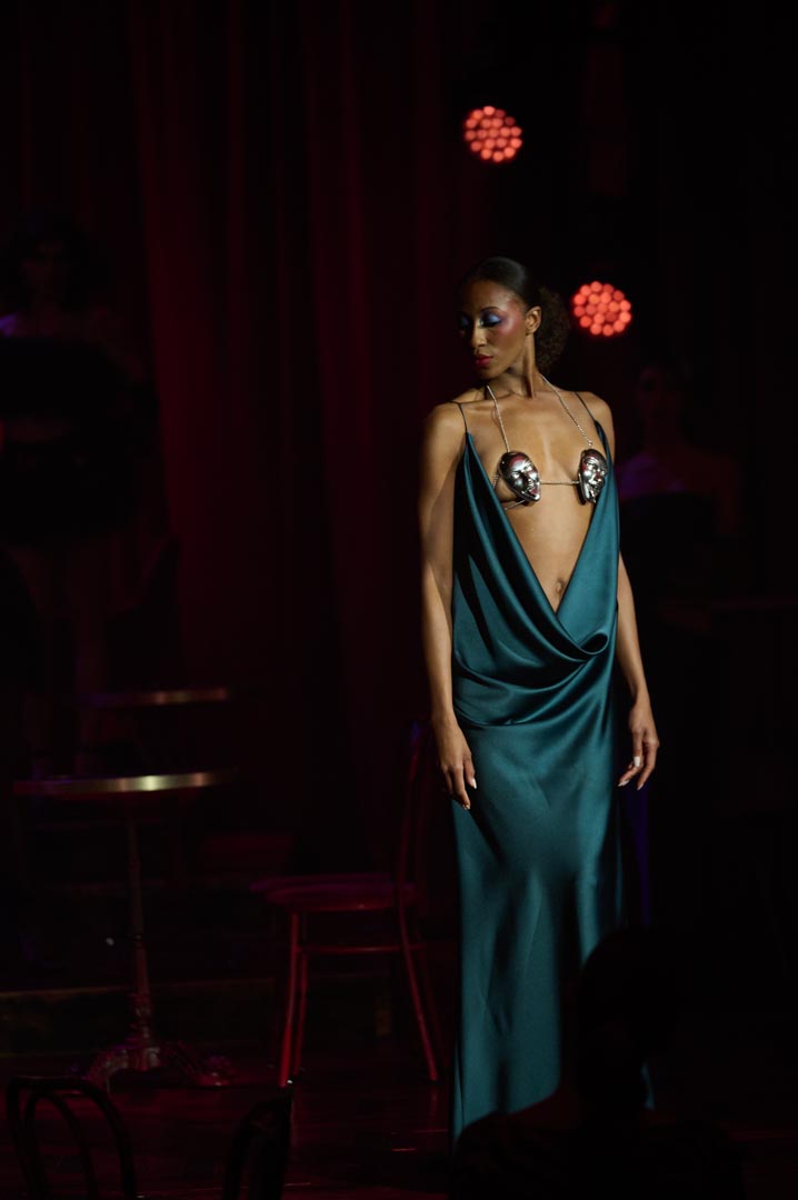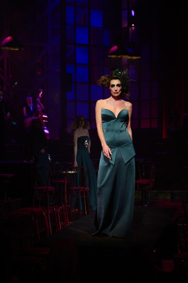 Eduardo Navarrete presenta Verde, una colección inspirada en las mujeres que revolucionaron los cafés cantantes de principios del siglo XX con humor, picardía y sensualidad. Figuras como Tórtola Valencia sirven de referencia para una propuesta que recupera el espíritu de aquellas artistas que desafiaron las normas sociales a través de la insinuación, la ironía y el gesto provocador, dando lugar a lo que se conoció como la “ola verde”. Con iconos como Laura Sánchez y Pino Montesdeoca sobre la pasarela y la actuación en directo de Asier Etxeandía, la presentación refuerza el carácter escénico de una colección donde el verde, único color protagonista, simboliza deseo, provocación elegante y libertad reinterpretados desde la mirada contemporánea del diseñador.