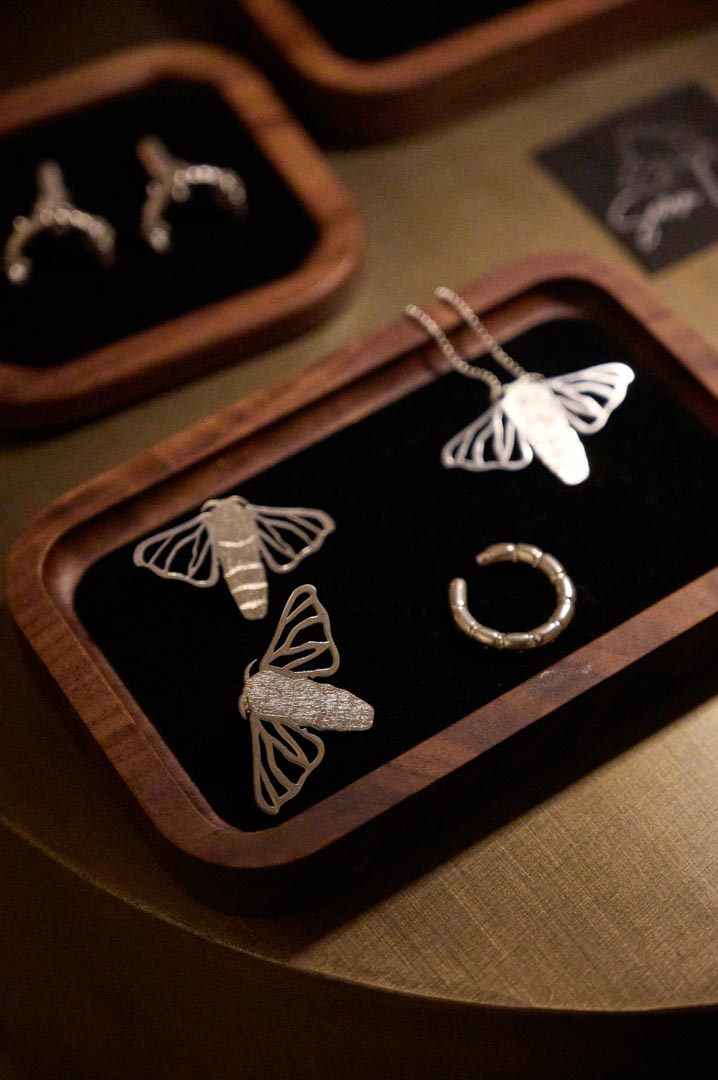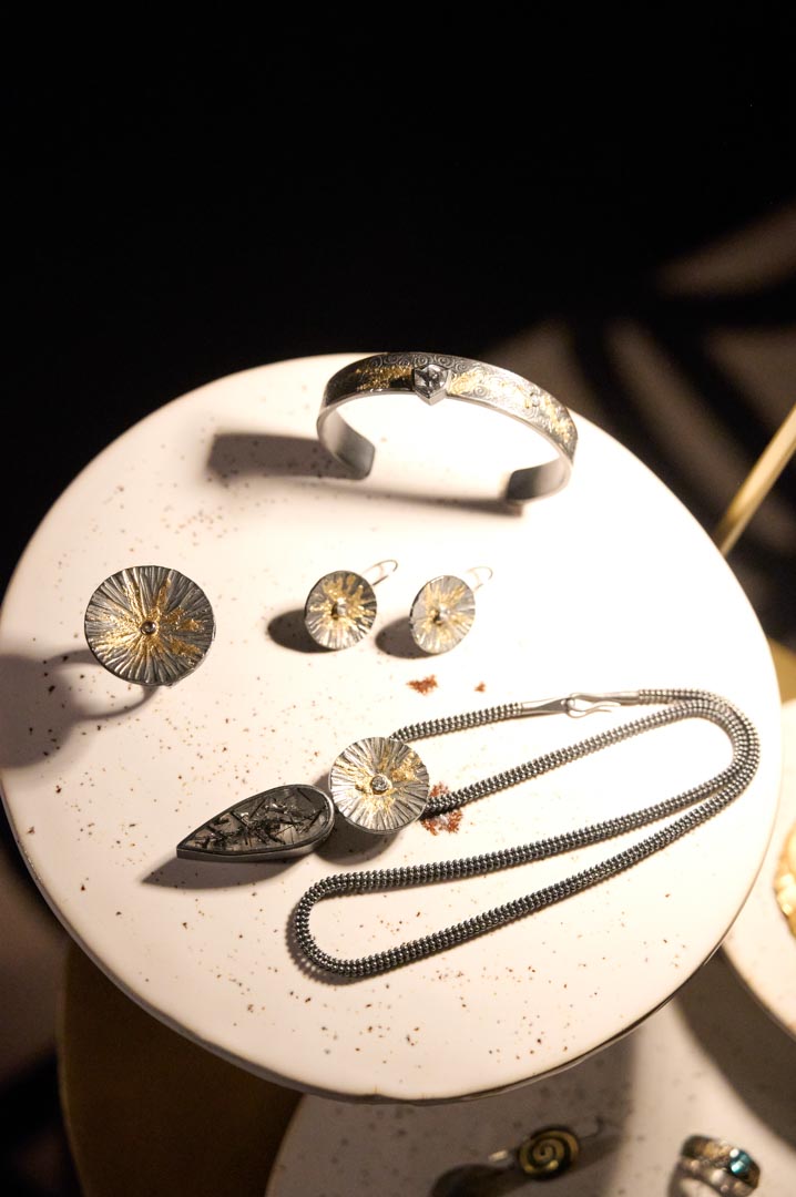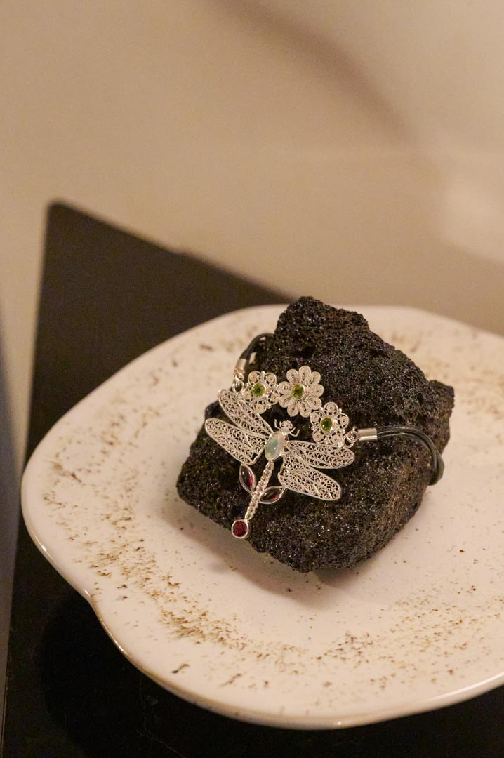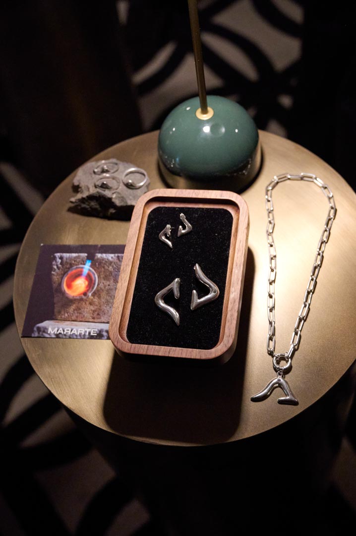 Inspirada en el proceso alquímico de La Palma, la propuesta explora la fuerza del fuego volcánico, la solidez de la lava, la transparencia del cristal y la magia de la transformación, trazando un recorrido que va de la destrucción a la resiliencia y al renacimiento. Cada joya se convierte en un testimonio de cómo la materia puede transformarse en belleza y significado.