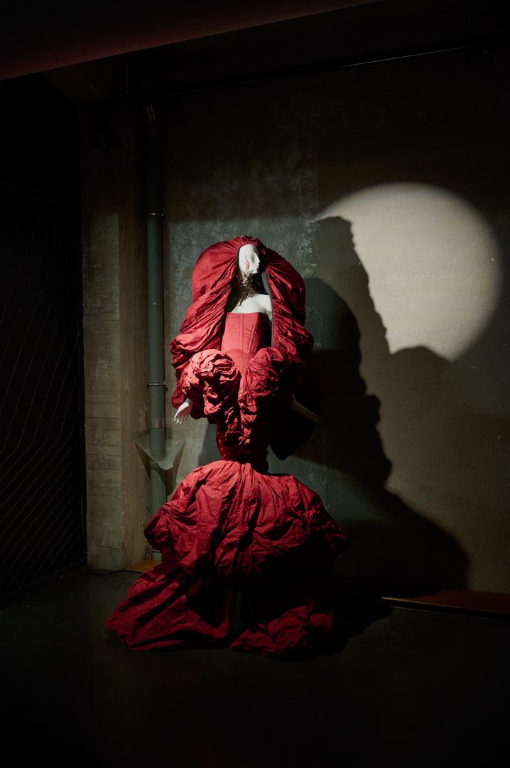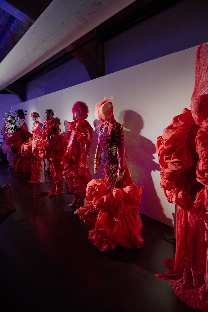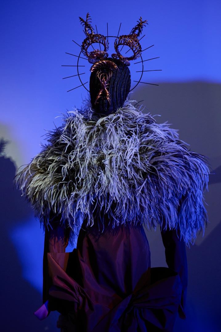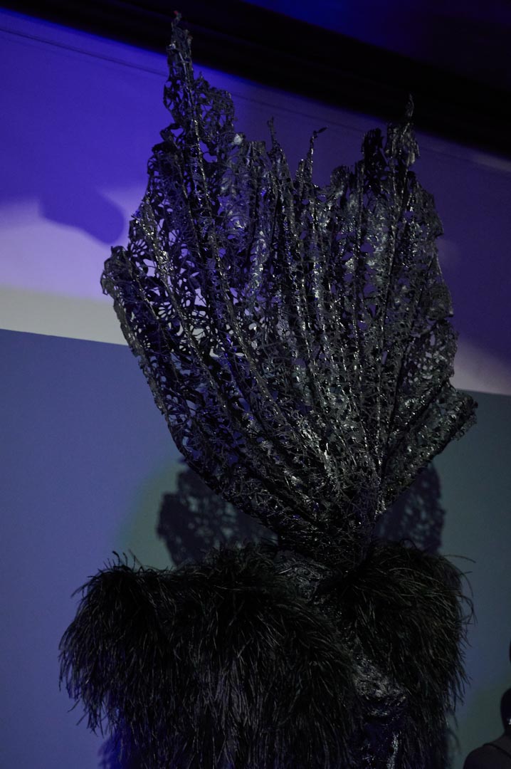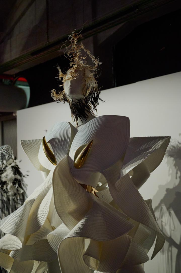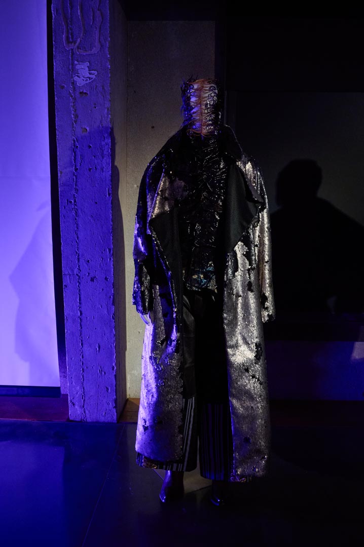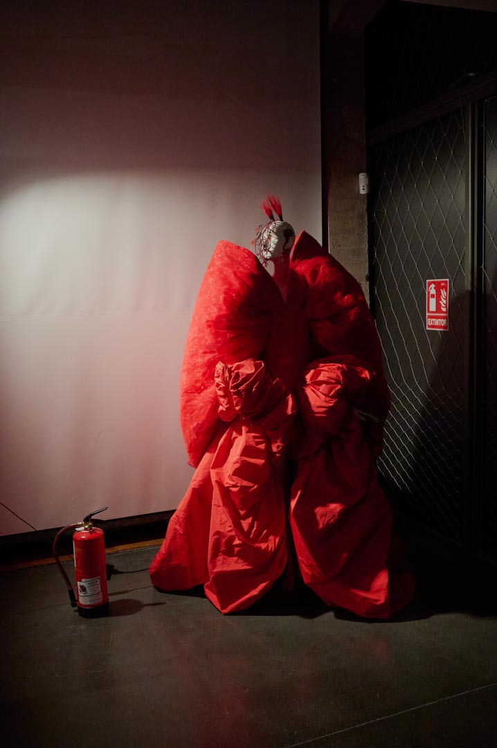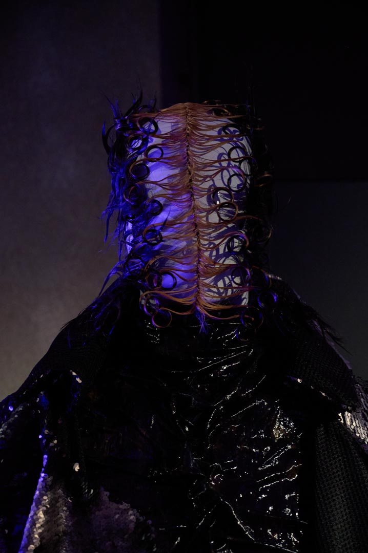 A partir de este punto, el proyecto evoluciona hacia una nueva naturaleza híbrida. Cerca de 55 looks, concebidos como piezas únicas, configuran un ecosistema mutante donde siluetas, volúmenes y estructuras transitan entre lo fluido y lo rígido, lo brillante y lo mate, en clave no gender. Desarrollada íntegramente en el taller de It-Spain en Madrid, la colección combina técnicas artesanales, reconstrucción y reutilización de materiales desde una exploración formal libre.