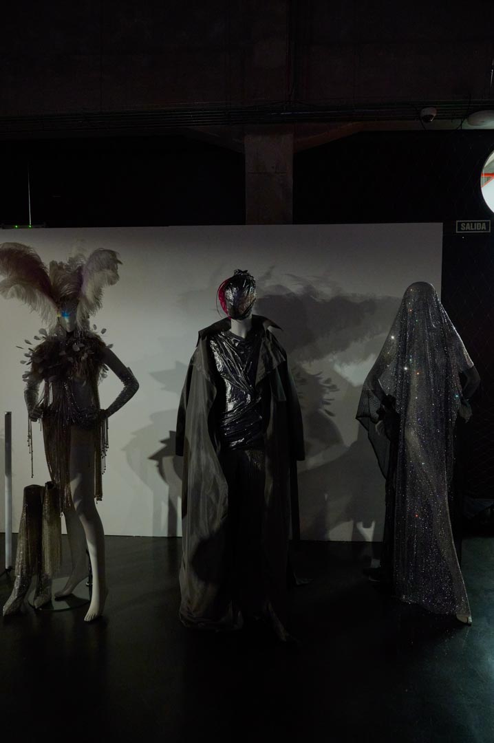 La exposición se abre con una escena que encarna el presente, la era del algoritmo, el control y la observación: cinco maniquíes de estética sobria y clínica rodean un escáner humano sobre una plataforma giratoria, símbolo del cuerpo analizado y clasificado en el entorno digital.