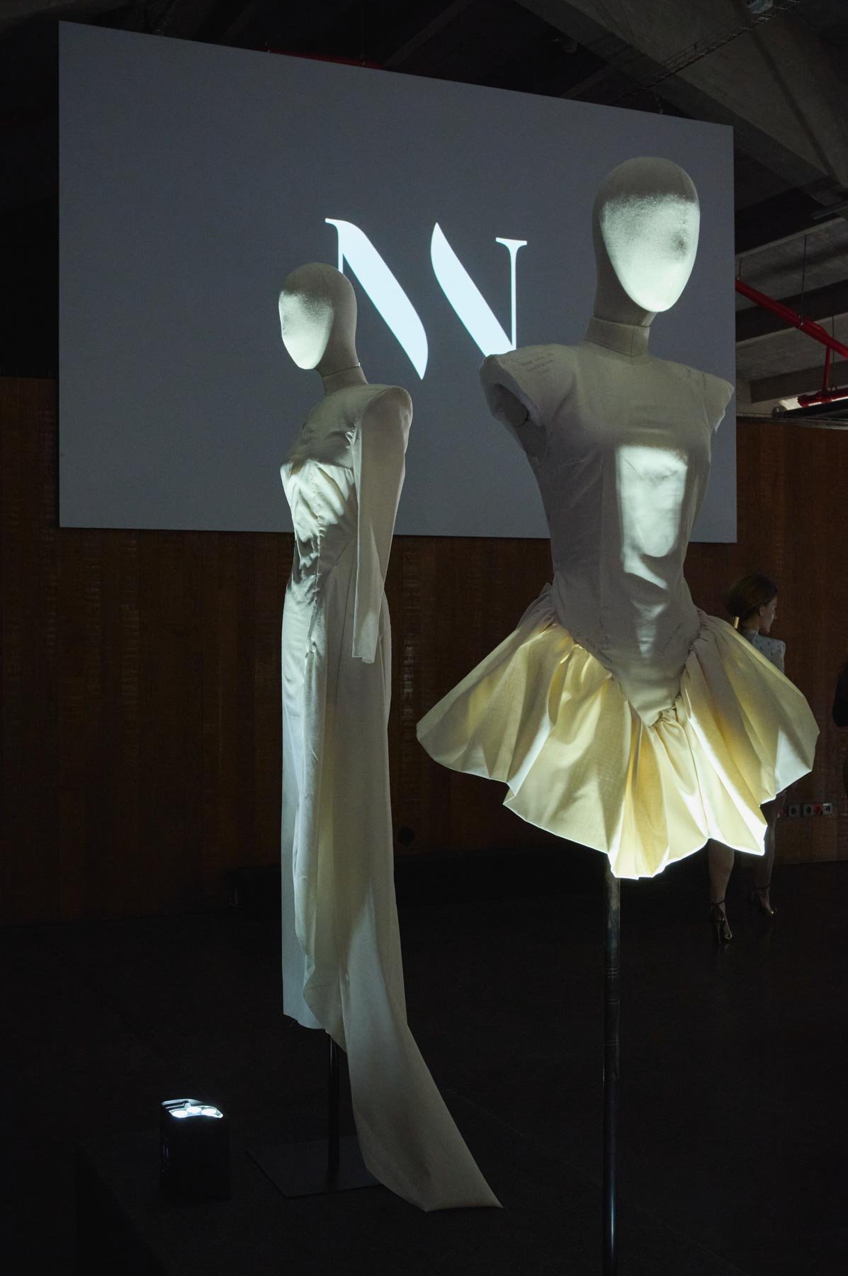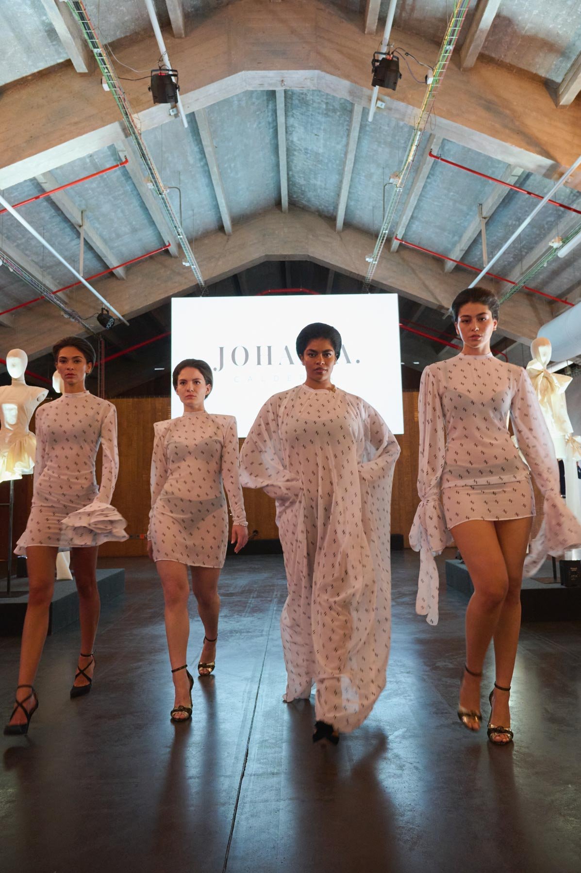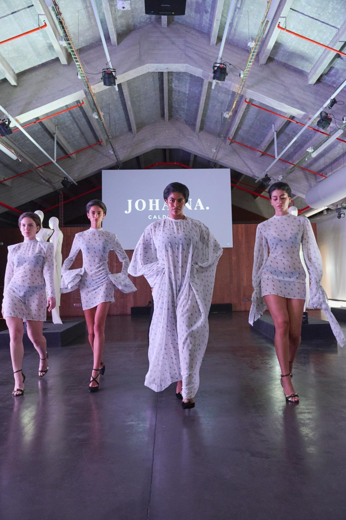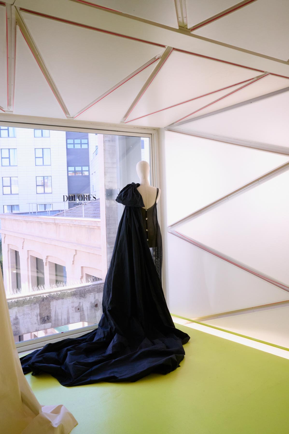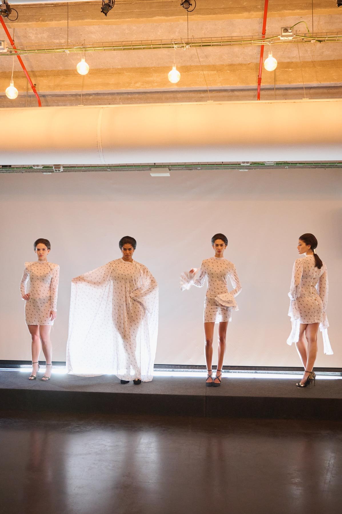 Tejidos como el tafetán, la sarga, la gasa o el mikado dan vida a la colección en tonos como el naranja, fucsia, rojo, blanco y negro. “Dolores” se presenta en formato híbrido, con diseños que nacen en digital y se transforman en prendas físicas, accesibles en diferentes tallas. Además, sus procesos y patrones se comparten con el público como parte de la experiencia. Una propuesta donde pasado y futuro conviven en armonía.