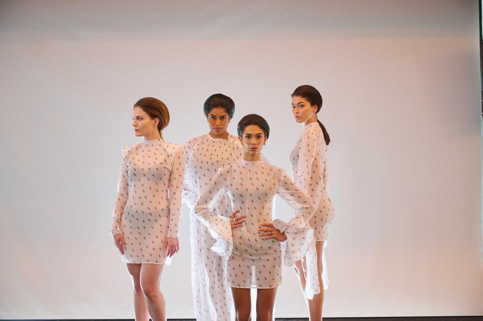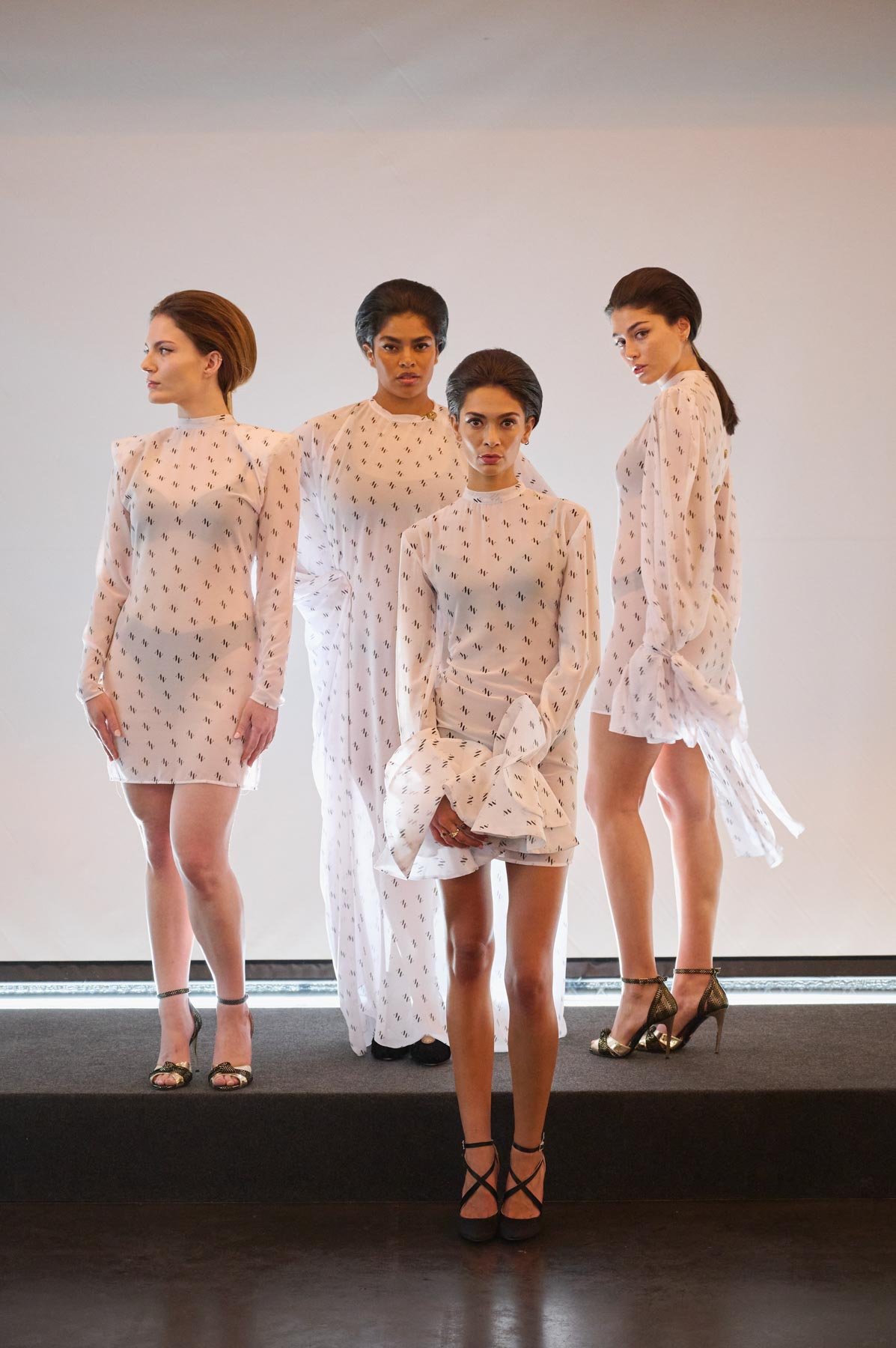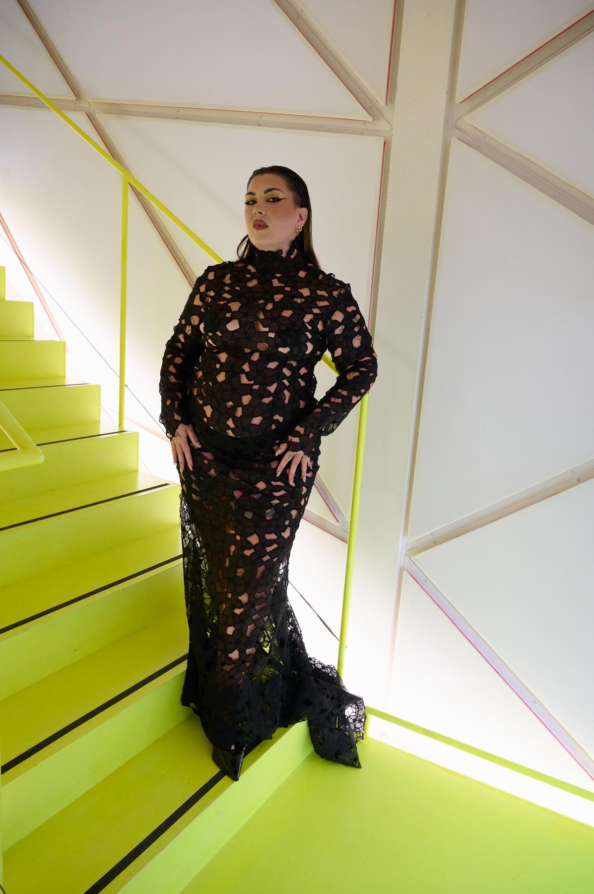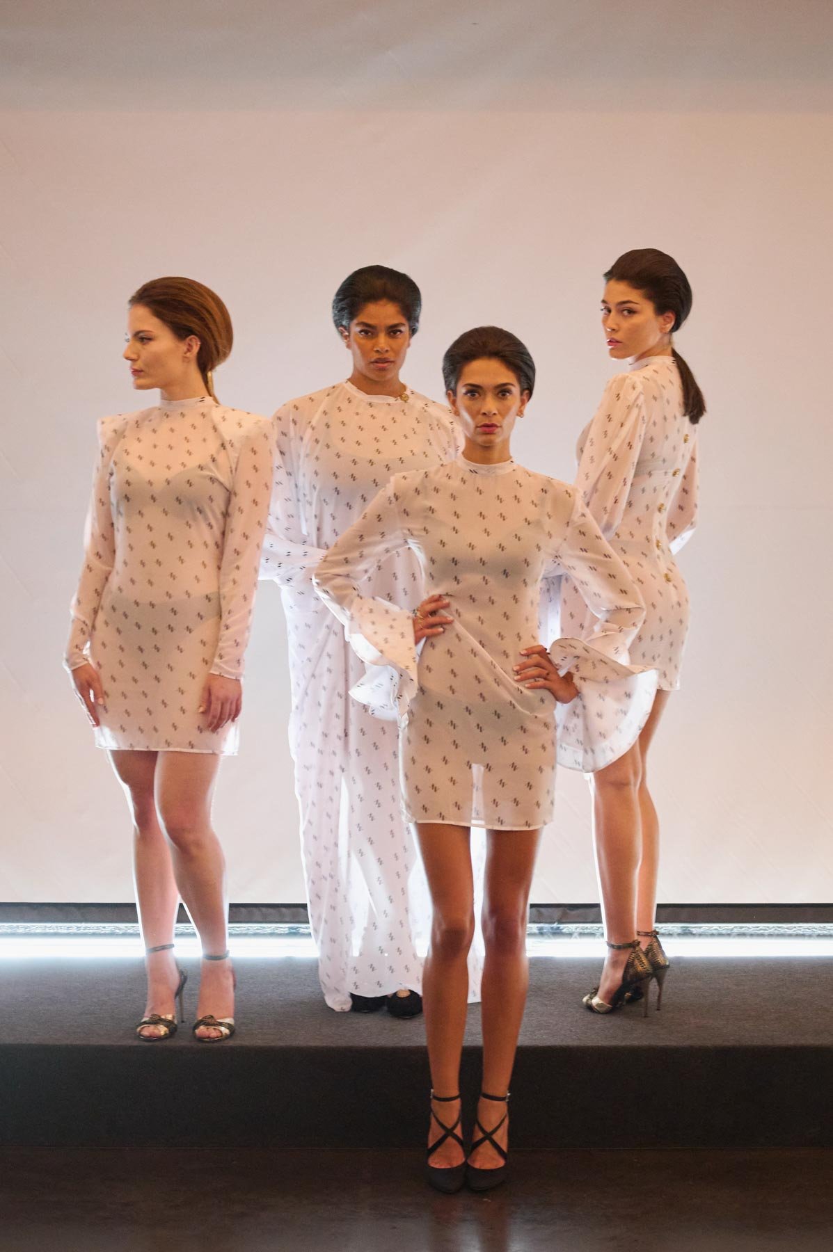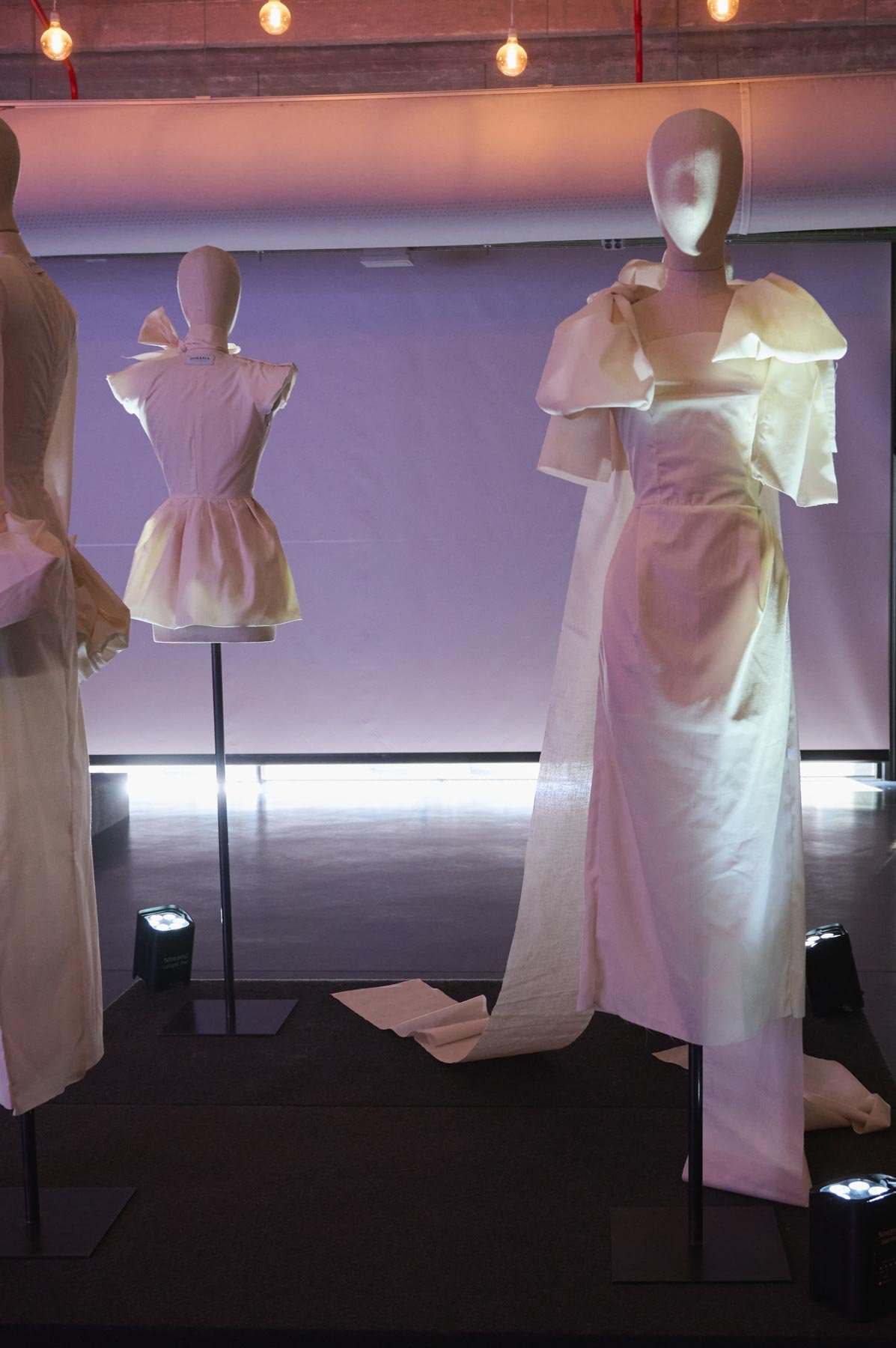 Tejidos como el tafetán, la sarga, la gasa o el mikado dan vida a la colección en tonos como el naranja, fucsia, rojo, blanco y negro. “Dolores” se presenta en formato híbrido, con diseños que nacen en digital y se transforman en prendas físicas, accesibles en diferentes tallas. Además, sus procesos y patrones se comparten con el público como parte de la experiencia. Una propuesta donde pasado y futuro conviven en armonía.