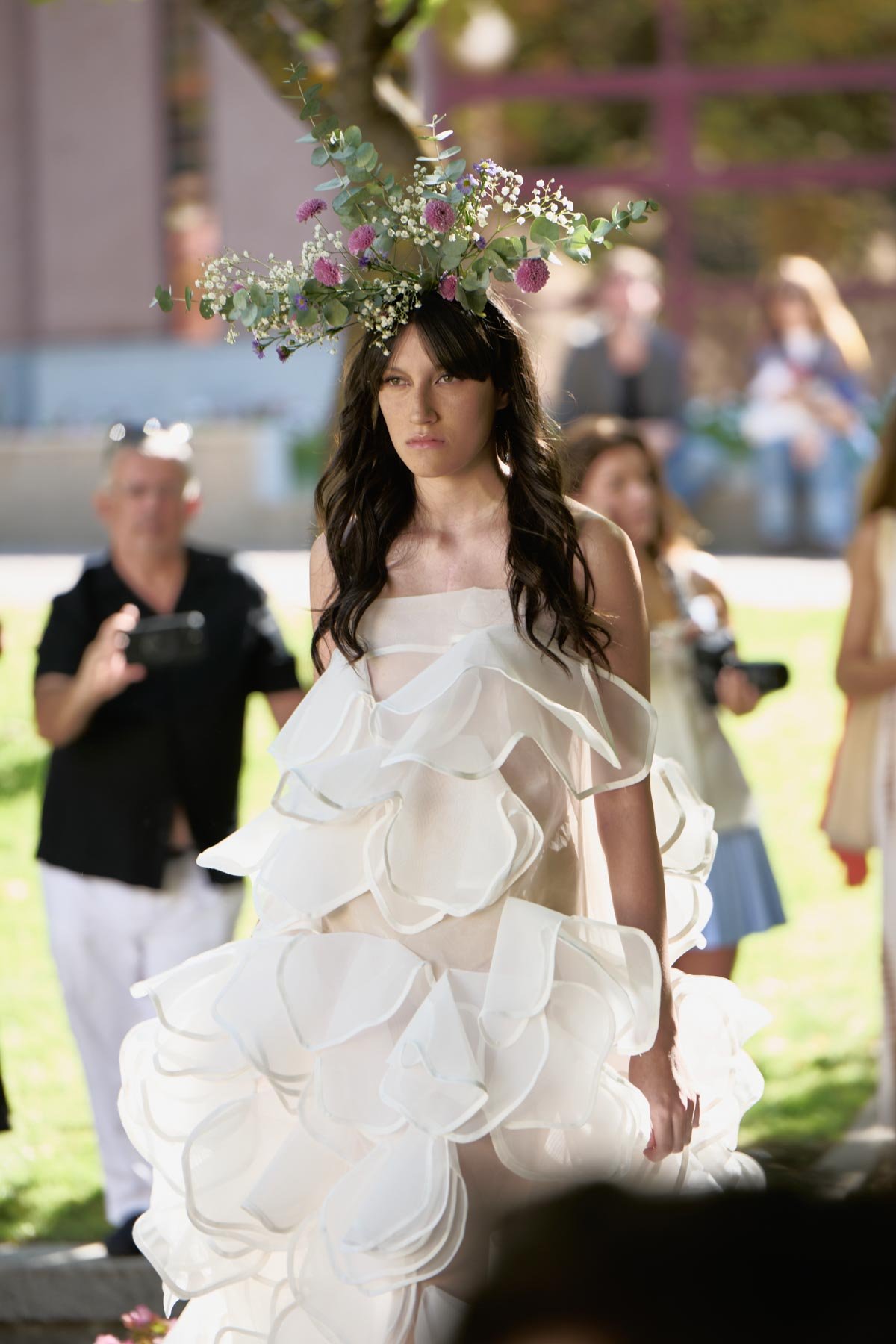 Confeccionadas con materiales que evocan vida y naturaleza, estas piezas rinden homenaje a la creación y al poder invisible de una mujer que se despliega con autenticidad y seguridad. Tejidos como el tencel con certificación PEFC, el tul, los algodones y el ganchillo artesanal dan forma y carácter a una colección que celebra la singularidad de cada mujer a través de la moda de autor.