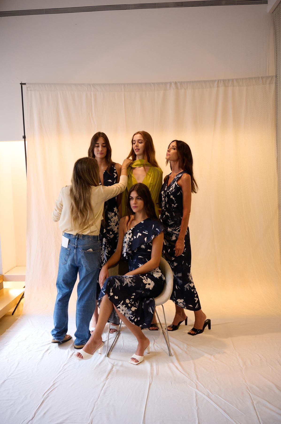 La colección se presenta en exclusiva durante un shooting en directo desde su atelier. Una experiencia íntima donde los vestidos se muestran en su contexto más auténtico: entre bocetos, costuras y luz real.