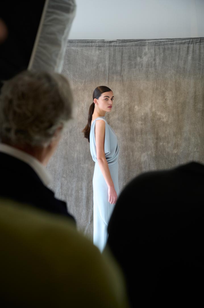 Roberto Torretta presenta su nueva colección a través de un shooting en su showroom, un espacio diseñado por Patricia Urquiola donde arquitectura, luz y textura dialogan en calma. La propuesta, concebida como una colección cápsula, explora la esencia del gesto y la materia.
