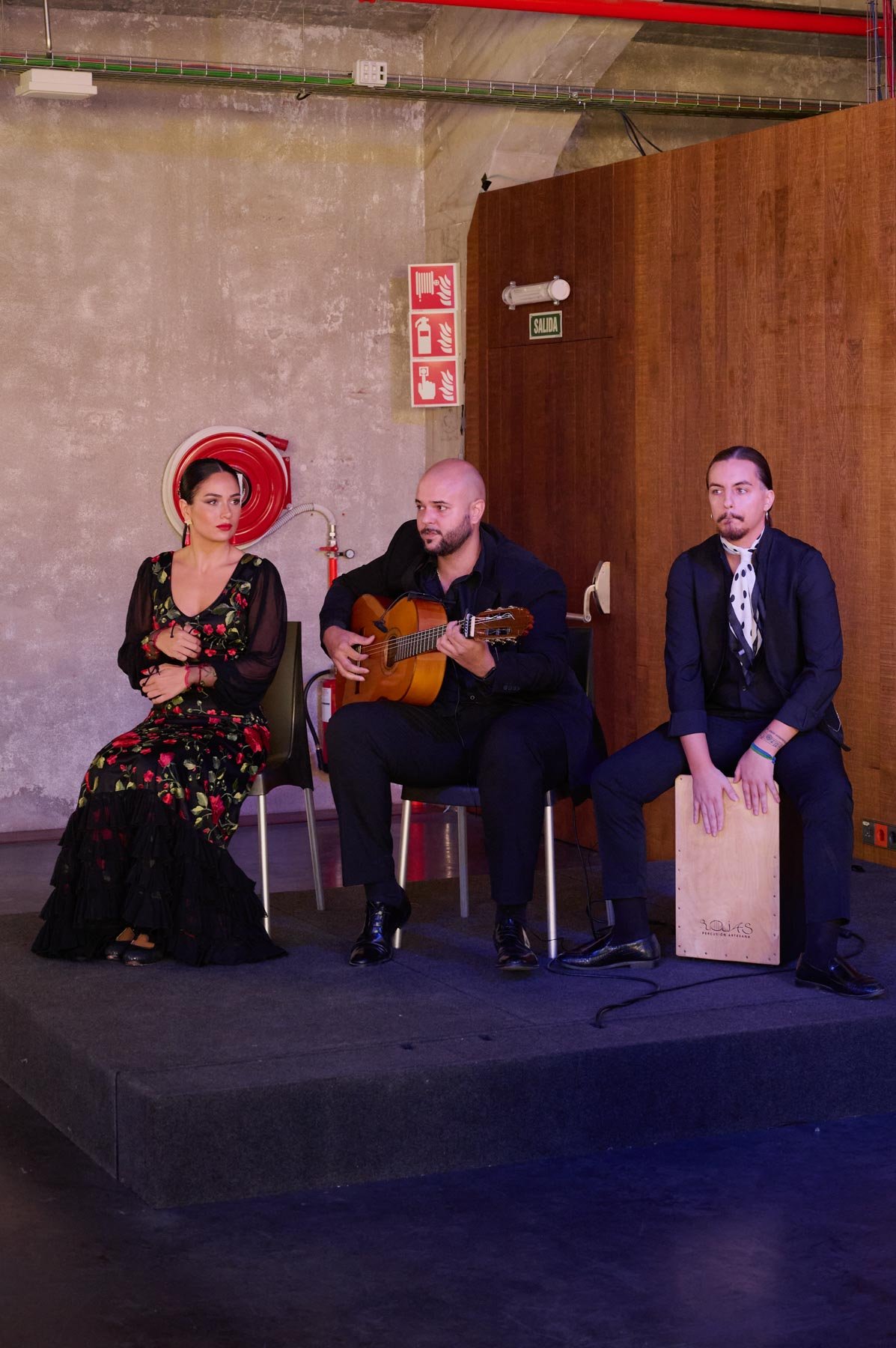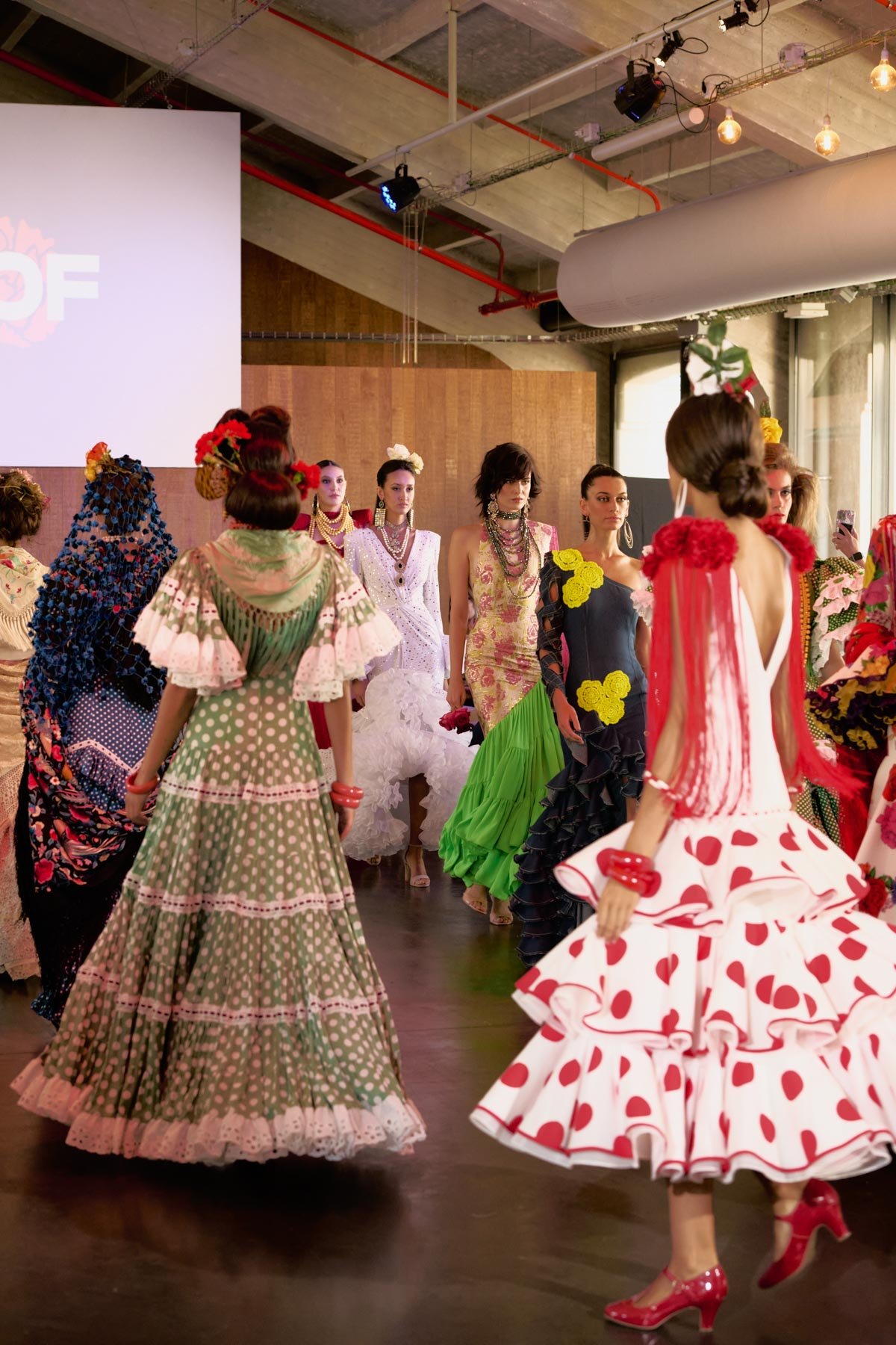 Ángeles Isa, Arantxa Aguilera, Castrejón, Conso Delgado, Eli Martín, Inma Benicio, Mari Carmen Sáez Flamenca, Maricruz & Montecarlo desde 1958, Peca, Pilar Vera y Sergy & Tapiju son los once diseñadores andaluces que mostrarán sus creaciones al ritmo de la música en vivo de El Palacio Andaluz. La evolución del traje de flamenca se acompaña de representaciones pictóricas, cinematográficas y documentales que ilustran y contextualizan cada década de su historia.