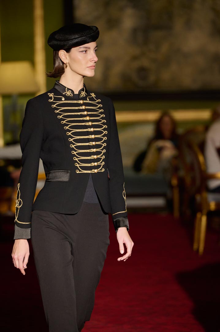 El Legado Sastre incorpora guiños a la tradición militar y napoleónica mediante pasamanería técnica, galonados de inspiración húsar y bordados de alta precisión que enriquecen sus icónicas chaquetas. El Salón Duque del Wellington Hotel & Spa se transformará para la ocasión en un atelier efímero, ofreciendo una experiencia inmersiva que rinde homenaje al legado del maestro sastre y permite apreciar de cerca la excelencia artesanal de cada pieza.